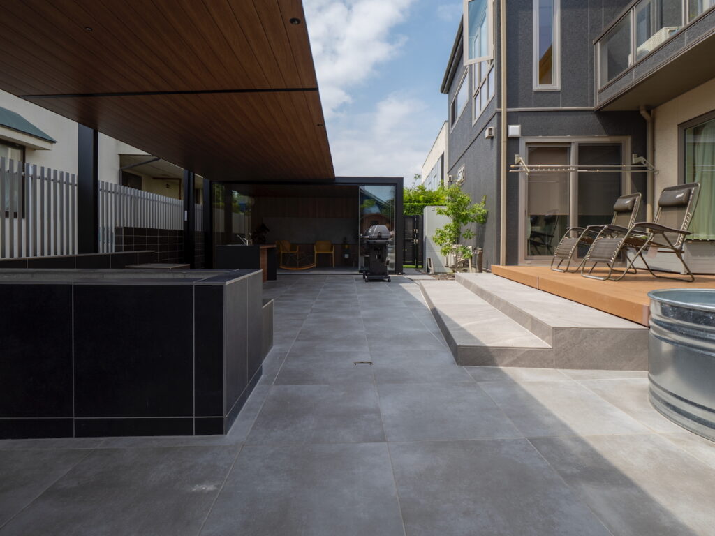 タイルテラスを敷き込むことで、足元から上質さが漂い、