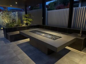 バイオエタノール暖炉 ecosmart「GIN90 Chat」 をガーデンテラスの中心に据え、