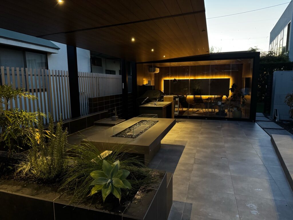外の開放感と室内の快適さを同時に叶える、洗練されたガーデンラウンジをデザインしました。